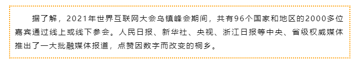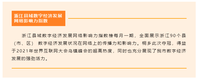 透过数字经济发展网络影响力榜单看桐乡,2021年世界互联网大会乌镇峰会犹如一个窗口,让大家看到了更快更高更强的桐乡——大项目正式落成、大企业数字化赋能、优质项目纷纷签约。