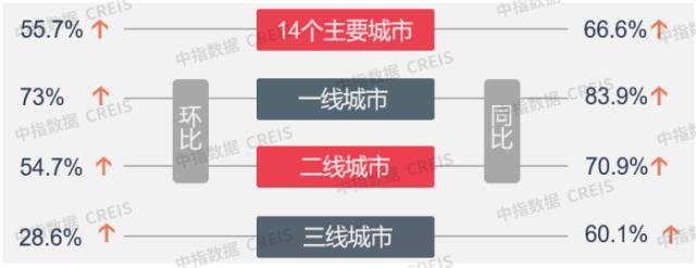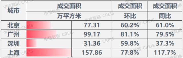 一线城市:楼市成交整体上涨,其中广州、上海环比涨幅明显