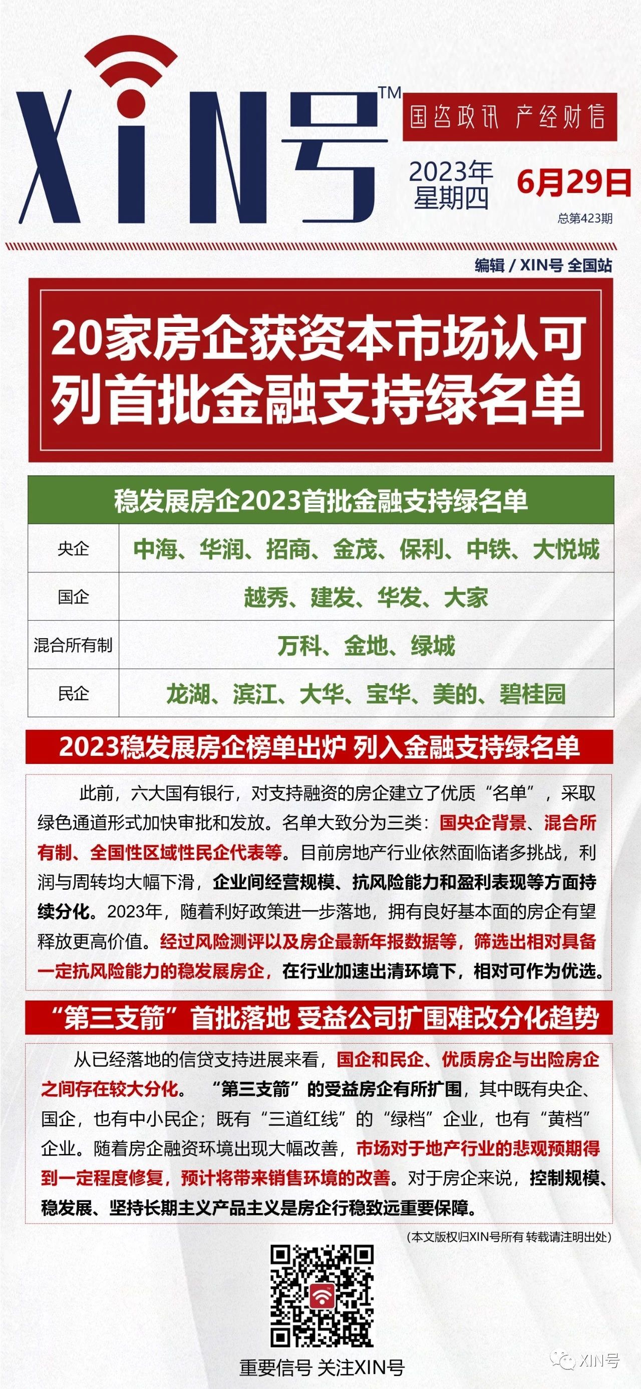 20家房企获资本市场认可!列首批金融支持绿名单!