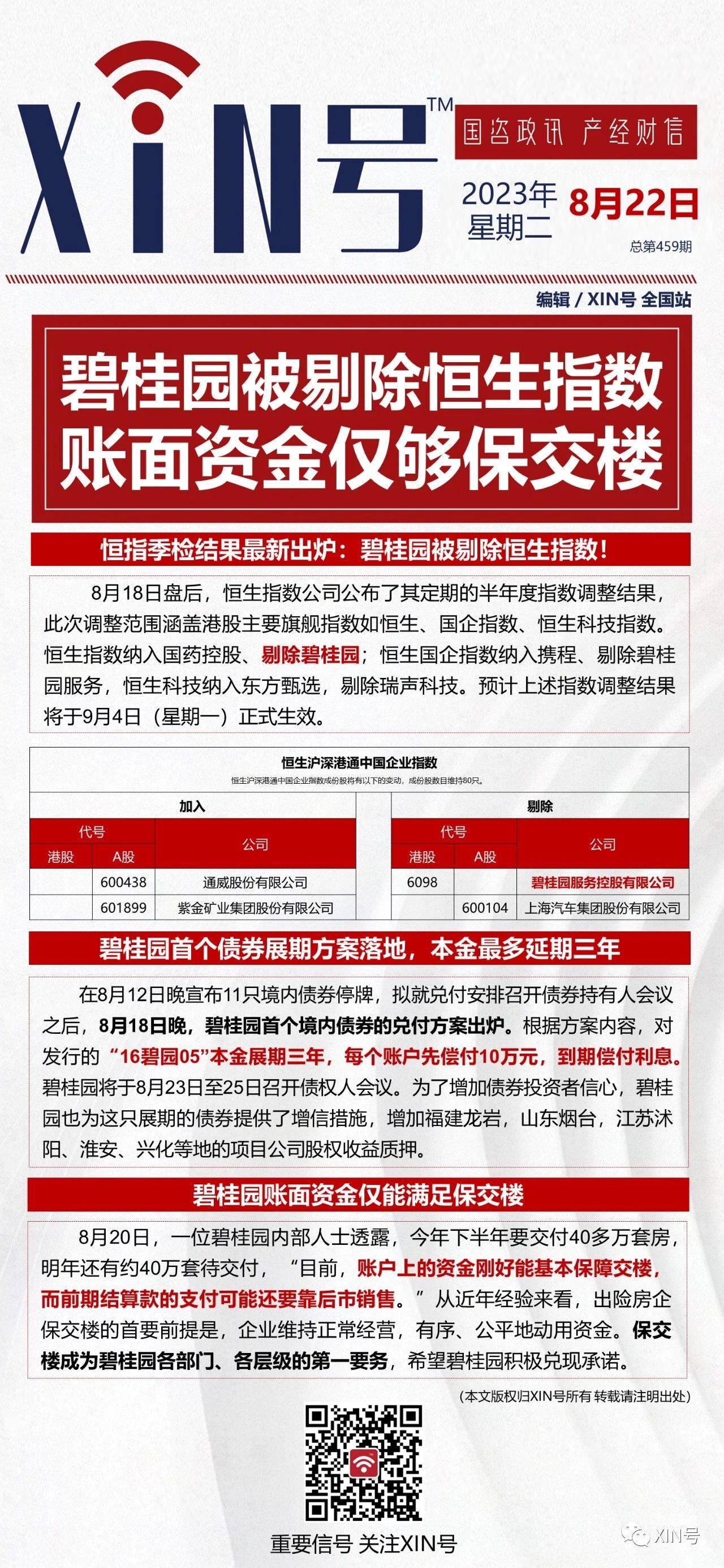 碧桂园被剔除恒生指数…账面资金仅够保交楼…