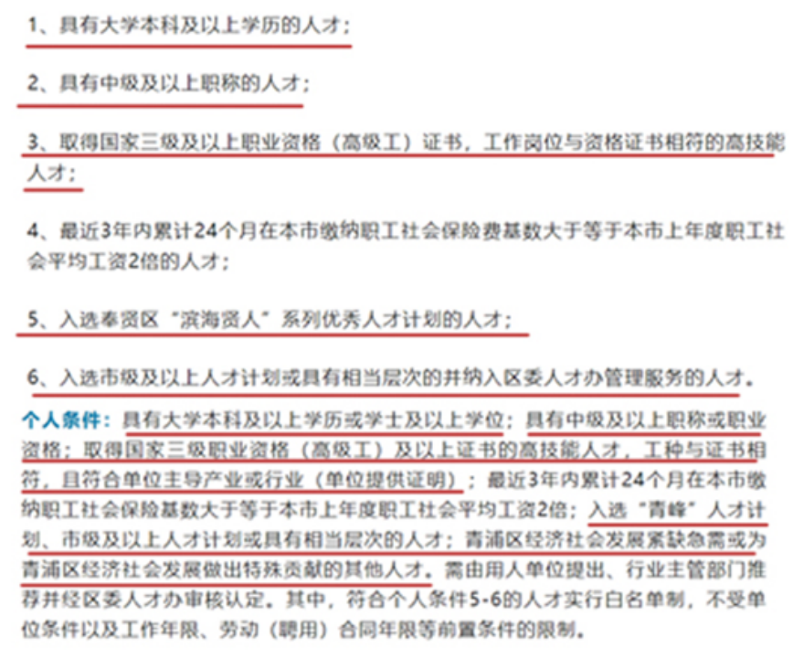 看完这些条件你会发现,其实这些条件已经无限接近上海户口的申领标准了,无论是学历职称,还是特殊人才,这和上海的人才引进和户口积分政策大同小异。