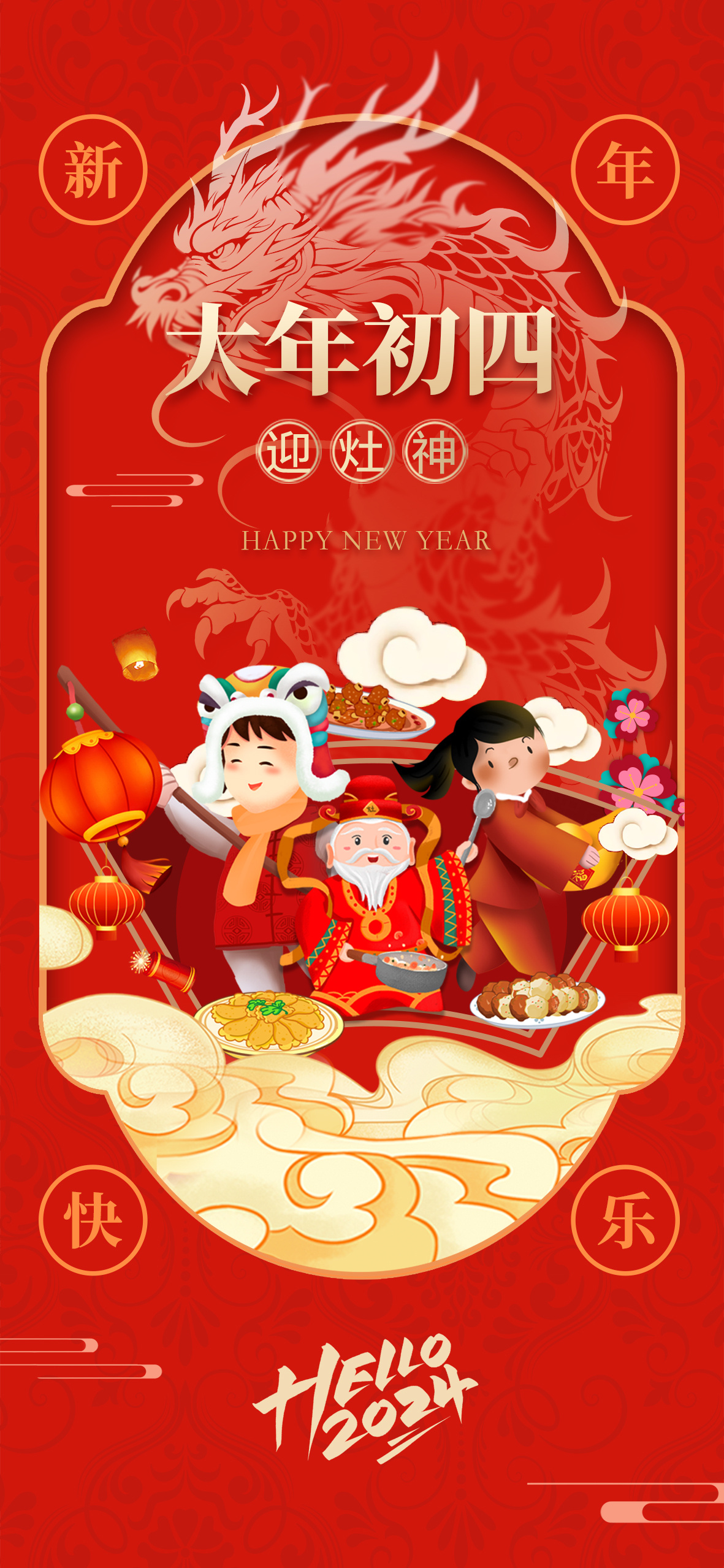 龙年初四迎灶神,愿你新的一年里,如龙腾飞,步步高升;如龙入海,深不可测;如龙在田,吉祥如意。