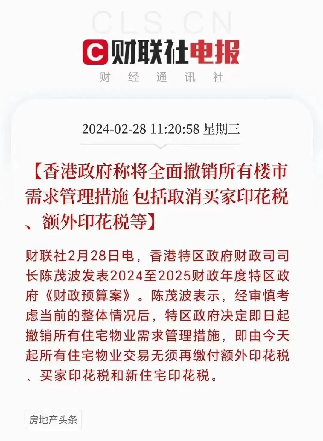 要知道,香港没有限购限售政策,政府管控楼市靠的是税收政策,此次税收免收,相当于香港全面撤销所有楼市需求管理措施,楼市完全放开。