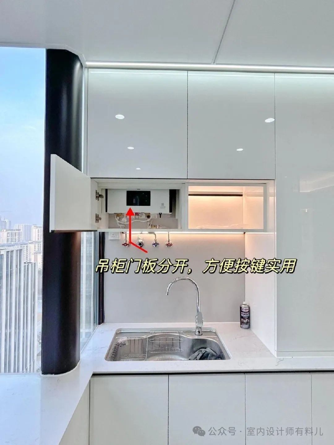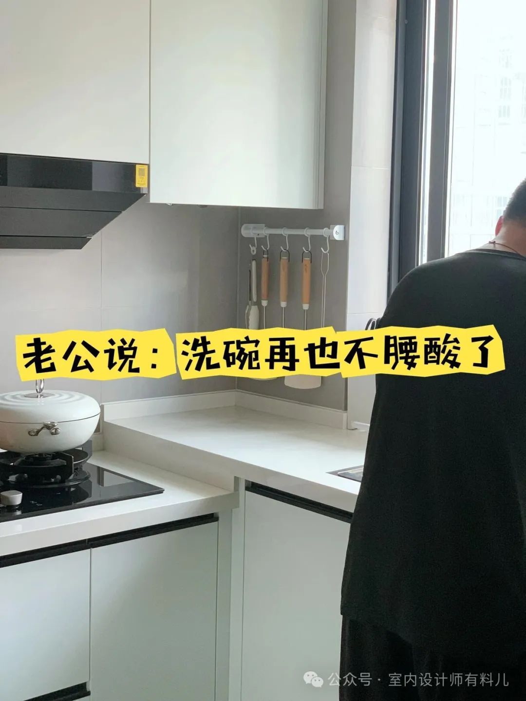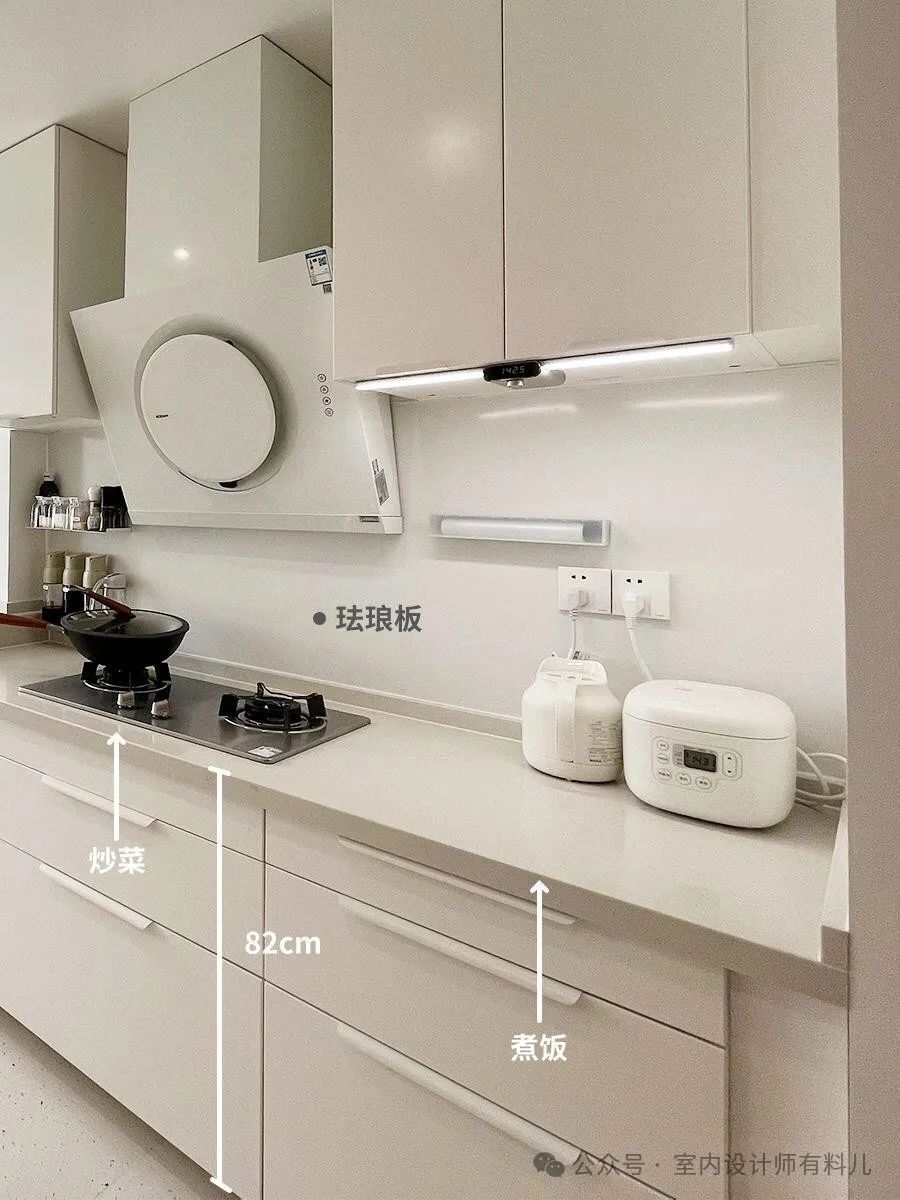 这样洗菜刷锅不用弯着腰,炒菜不用抬着胳膊,真的很好用,大家可以在设计橱柜前用尺子试着量一量。