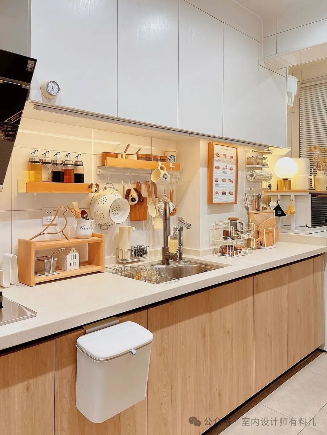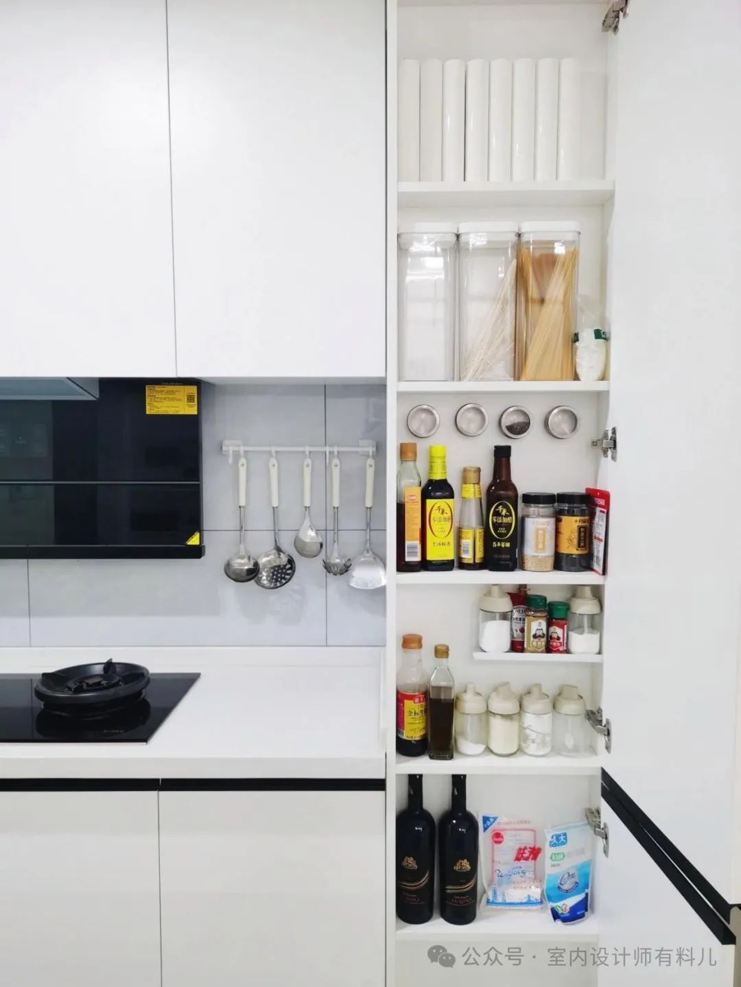 厨房空间本就有限,将物品上墙收纳能省出很多台面空间,所以,对小户型来说真的很友好。