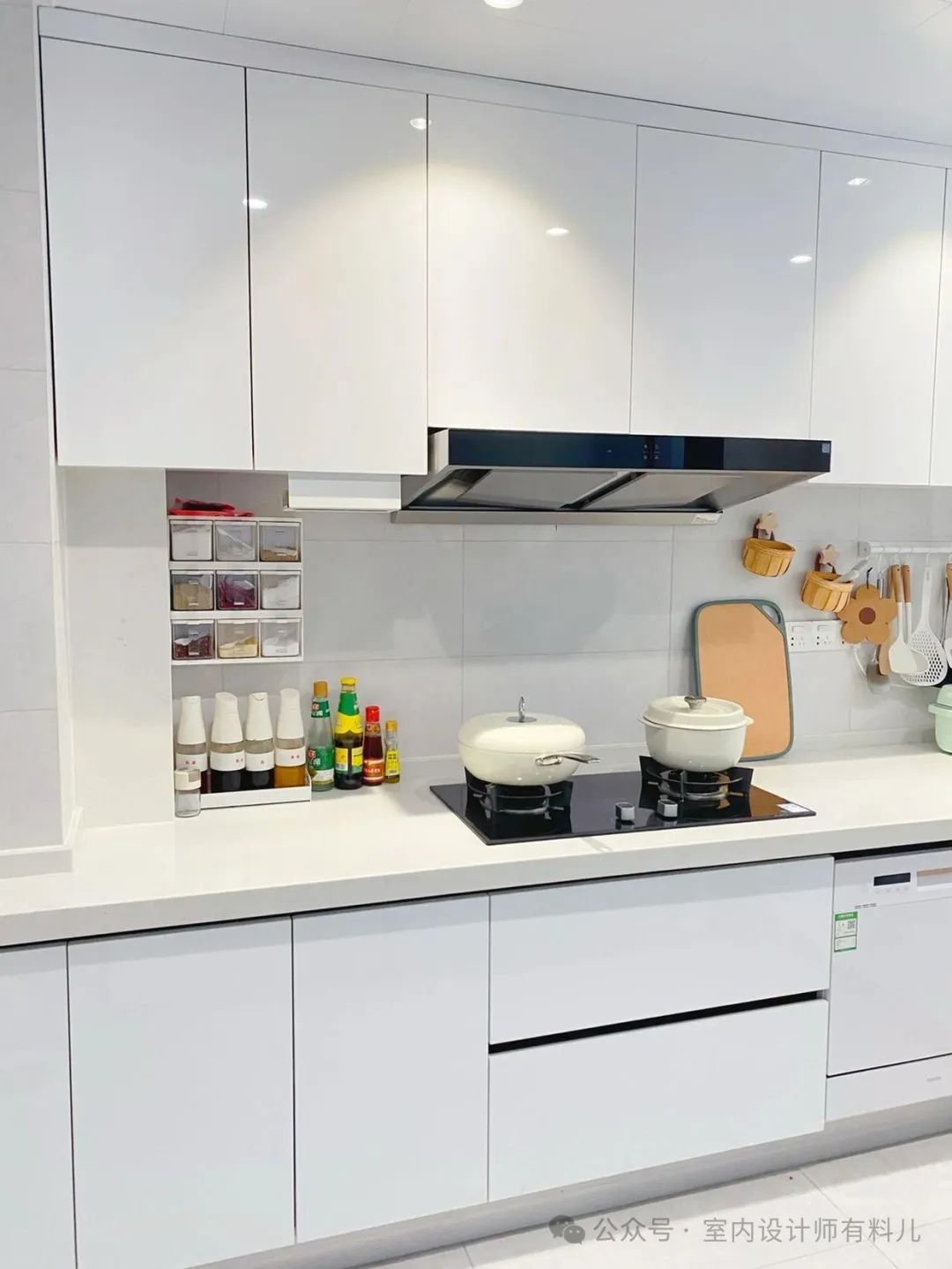 此外,颜色选白色的,能让整个厨房的视觉感放大,并且橱柜上下同色,再搭配同色系的台面,整个橱柜给人的感觉就是非常整洁,干净。