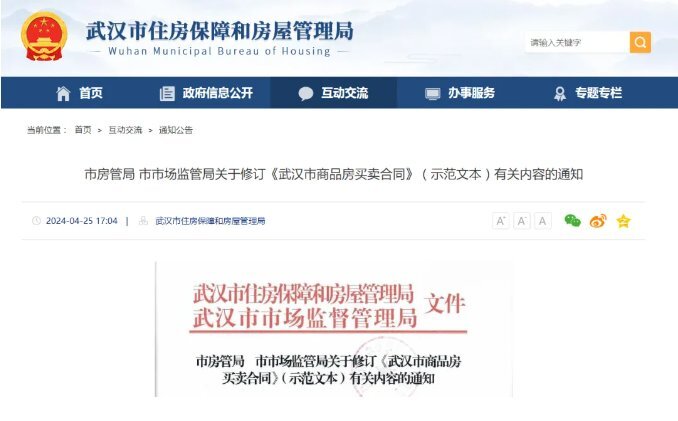 4月25日,武汉市房管局发布“关于修订《武汉市商品房买卖合同》(示范文本)有关内容的通知”,涉及多项重要变化。