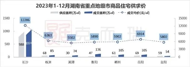 去年9月,长沙出台优化限购政策,湖南地级市整体受长沙虹吸,但仍有三大城市年度成交量破百万,相较2022年仅株洲跌出百万规模。