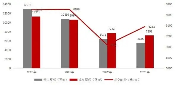 2023年河南省商品住宅全年累计供应5548万㎡,同比下滑14.3%;累计成交7191万㎡,同比下滑7%;全年商品住宅均价6382元/㎡,较2022年有所回升,但尚未达到2021年前水平。