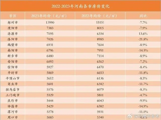 以非城镇化人口第一大省—河南为例,我们先看下河南省各城市的房价均价情况: