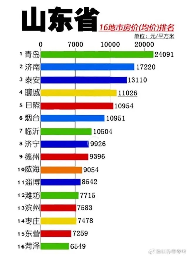 山东几大非城镇人口重点地级市,临沂2023年成交均价10047元/㎡;潍坊2023年成交均价7715元/㎡,菏泽2023年成交均价6549元/㎡,比之青岛、济南有着“半折”还多的价格优势。