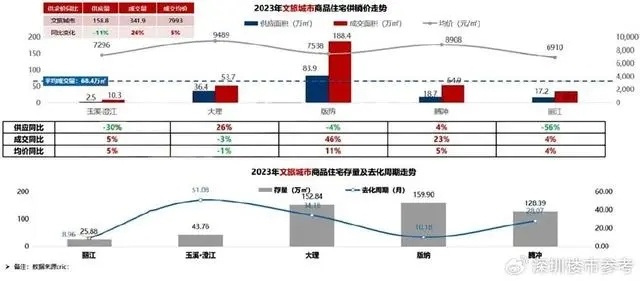 2023年云南省会昆明新建商品住宅成交价格从13830元/㎡下滑到13739/㎡。各地州城市中,非热门旅游城市的城市均价在4948—7398元/㎡之间,个别城市如临沧、迪庆两地的成交均价同比涨幅超过20%。以西双版纳、腾冲为代表的旅游城市,成交量价齐升,尤其西双版纳,成交同比去年大涨46%,均价同比上涨11%。