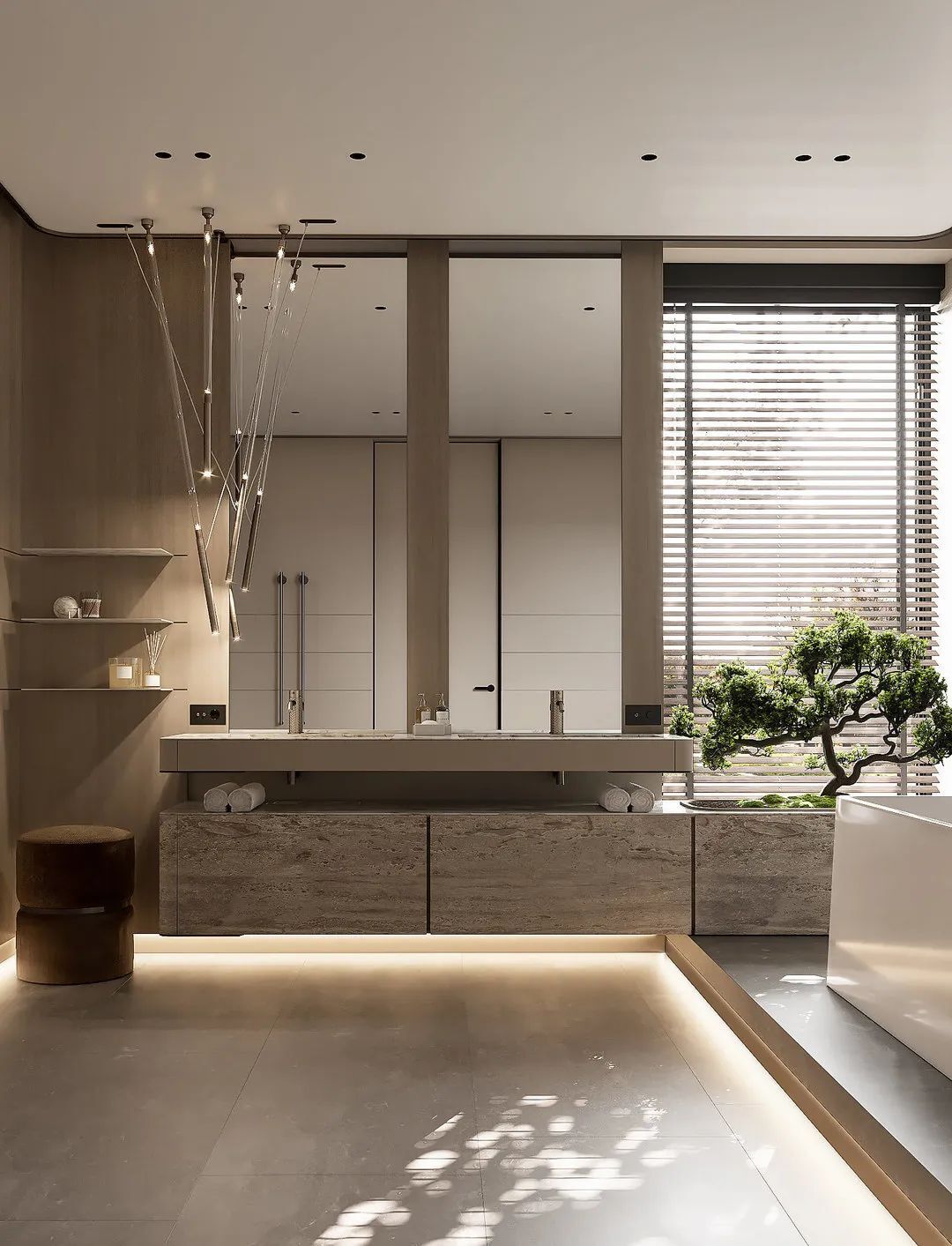设计建议:是否美缝要根据实际情况而定。如果我们选择的瓷砖是留缝铺贴,砖缝大于1毫米,美缝则是最好的选择,美观且便于清洁,瓷砖同色美缝也可弱化瓷砖缝隙存在感。