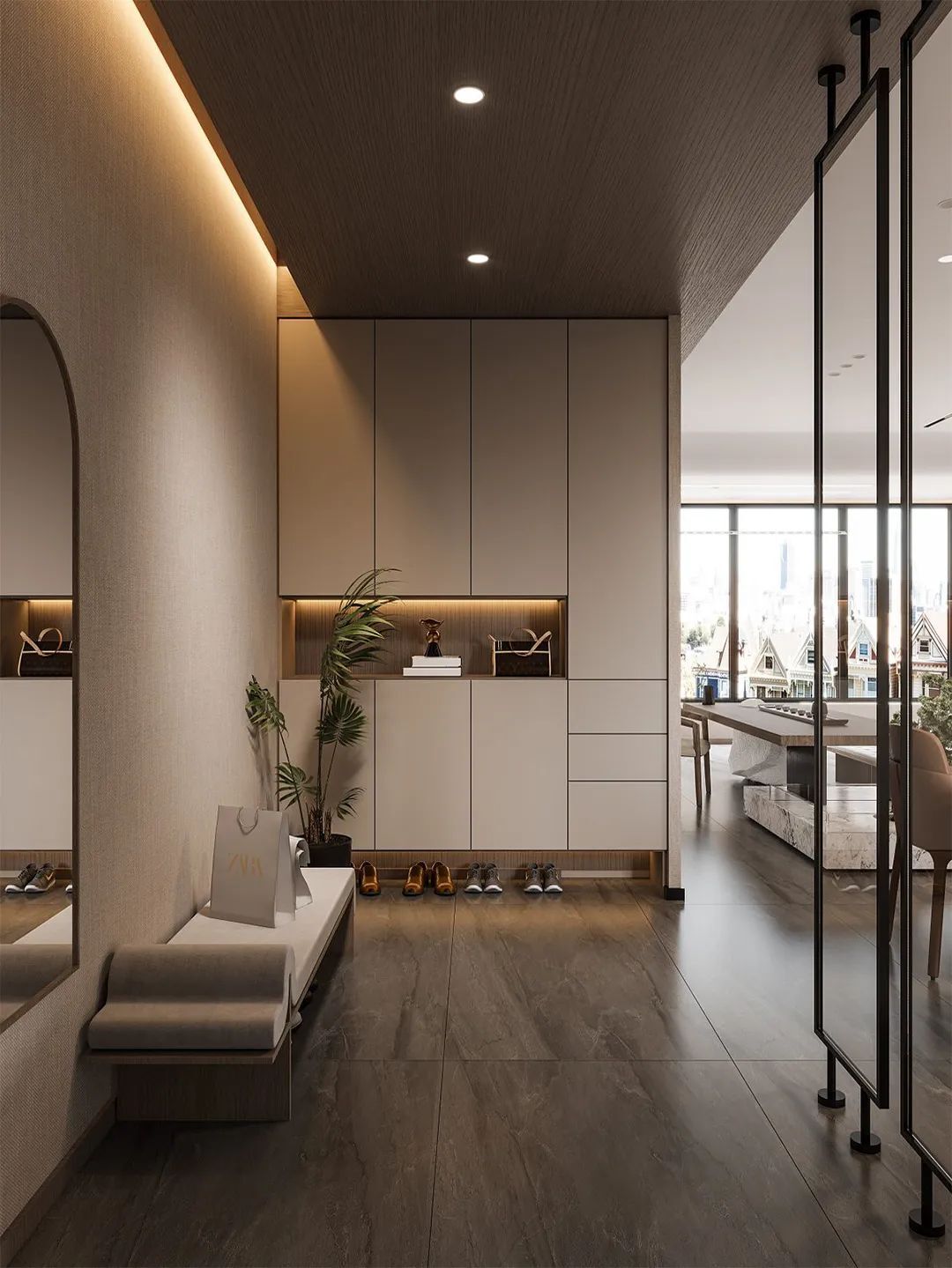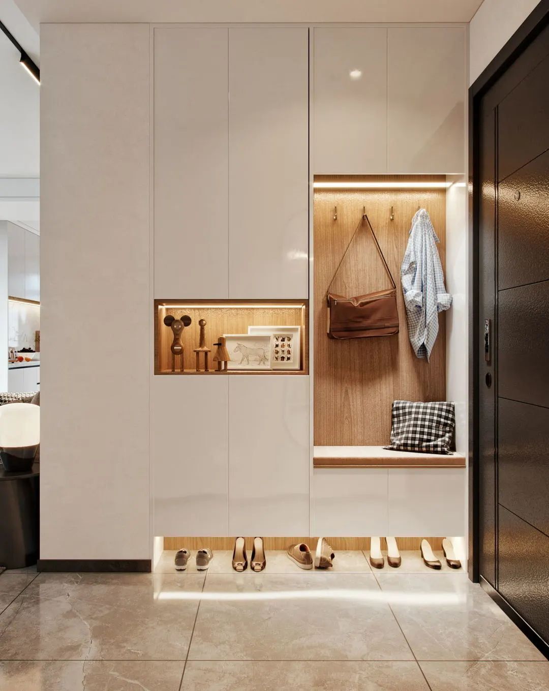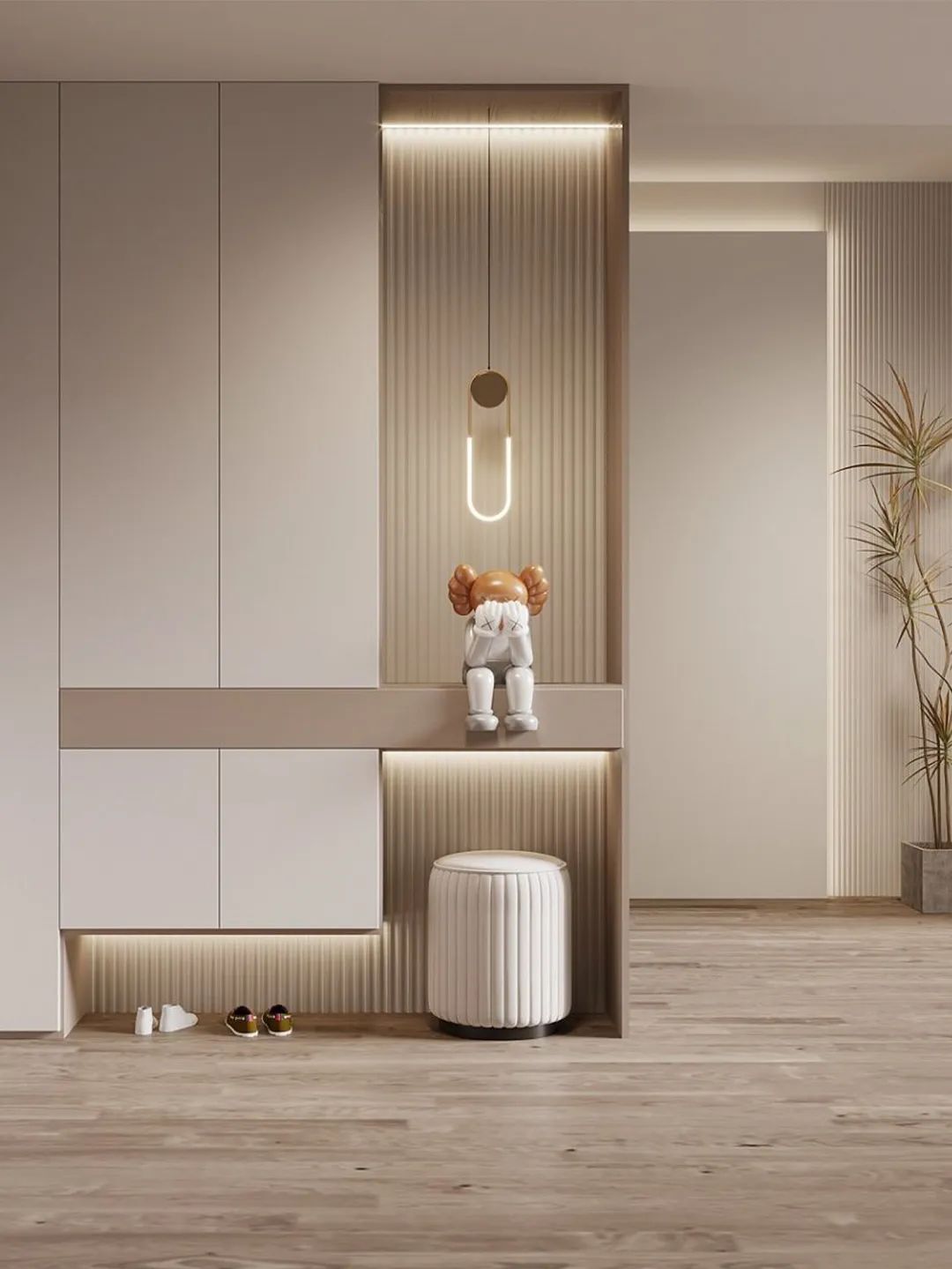 设计建议:部分柜子改做鞋凳,方便换鞋,上面还可挂进门衣物。