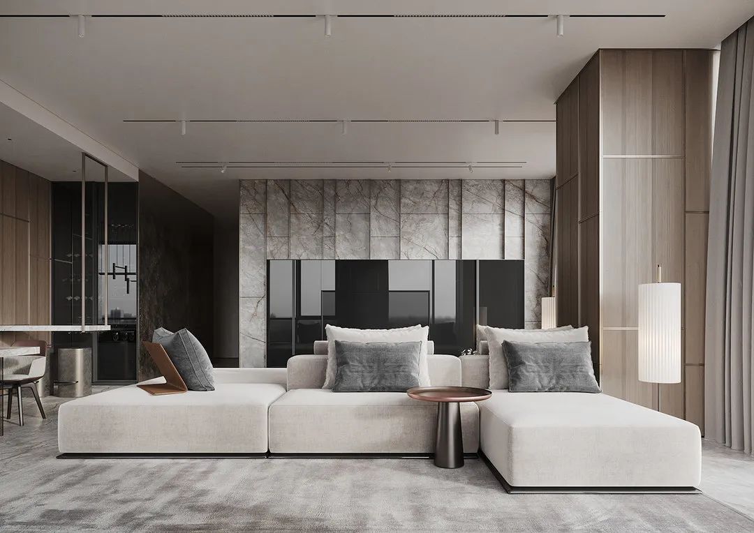 设计建议:吊灯尽量选择简约款式,大方美观。也可选择无主灯设计,客厅简约大气更有高级感。