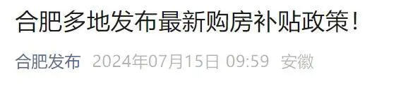 7月15日,据“合肥发布”公众号消息,合肥多地发布了最新购房补贴政策。