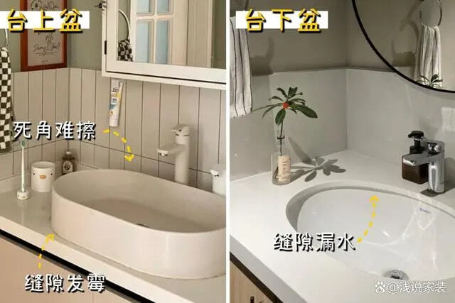 台下式水槽易于清洁,但缝隙容易积霉,易渗水老化。