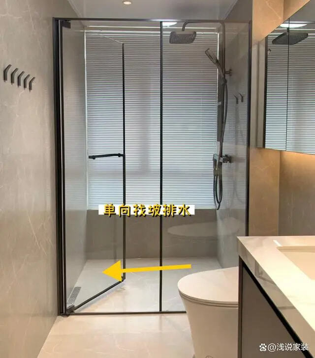 一个良好的淋浴区地面设计,关键在于地漏设计和坡度调整。