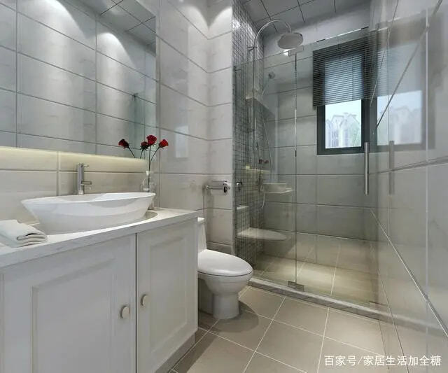 6、卫生间干湿分离一定要做。而对于年轻夫妻来说,如果家里只有一个不太大的卫生间,尽量不要采用玻璃淋浴房隔断的形式,因为一旦玻璃把空间分得太碎,你可能最后连小孩的洗澡盆都没法平放在地上。