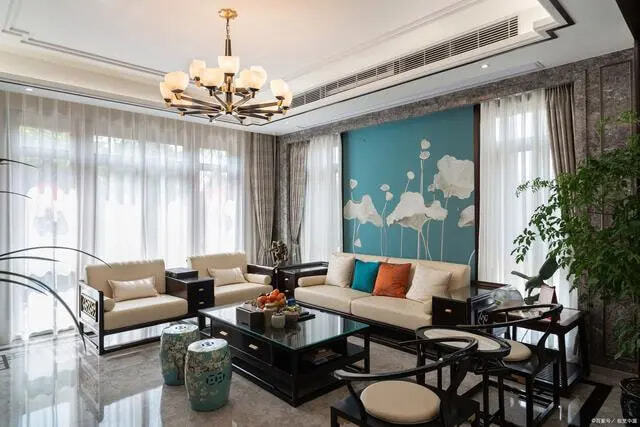 装饰上,新中式风格喜欢通过细节展现文化内涵,比如花鸟画、瓷器、木雕等,这些元素不仅增加了空间的艺术感,也让家居环境更加温馨有趣。如果你喜欢中国传统文化,又希望融入现代生活的便利,新中式风格绝对是一个不错的选择。
