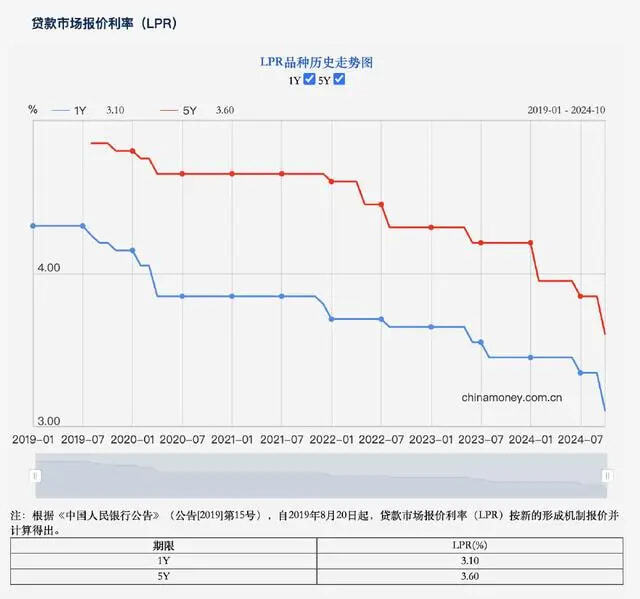 此前,5年期以上LPR分别于今年2月下调25个基点;7月,5年期以上LPR再度下调10个基点,加之10月下调的25个基点,5年期以上LPR年内已累计下调60个基点,即从年初的4.2%下调至当前的3.6%。