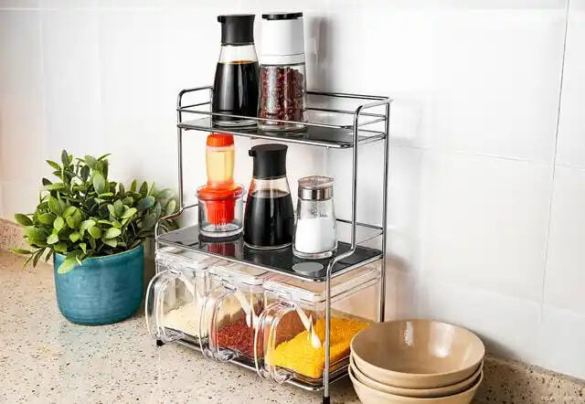 40、在灶台旁边放一个油盐酱醋的架子,可以方便快捷地取用食材。