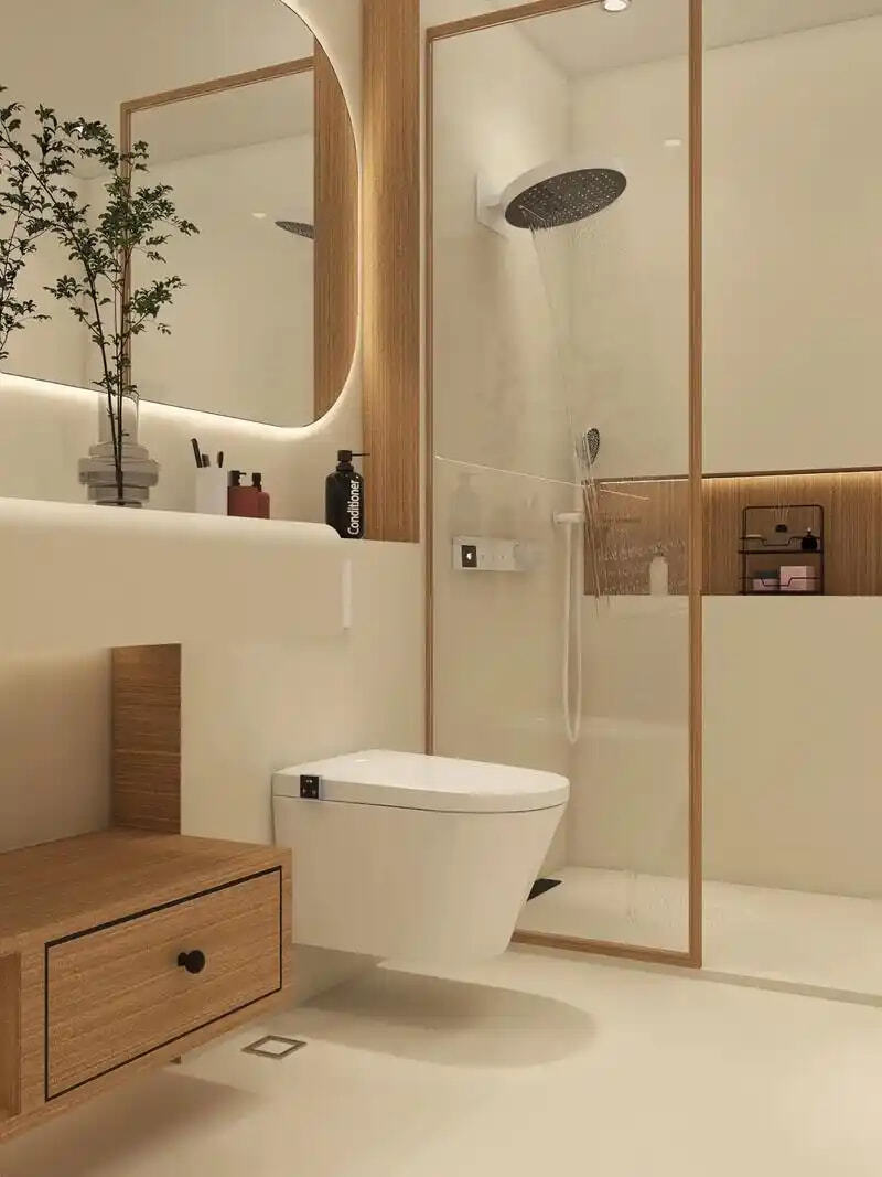 干湿分离:采用玻璃淋浴房或浴帘,将淋浴区与其他区域隔开,保持卫生间干燥,减少细菌滋生。