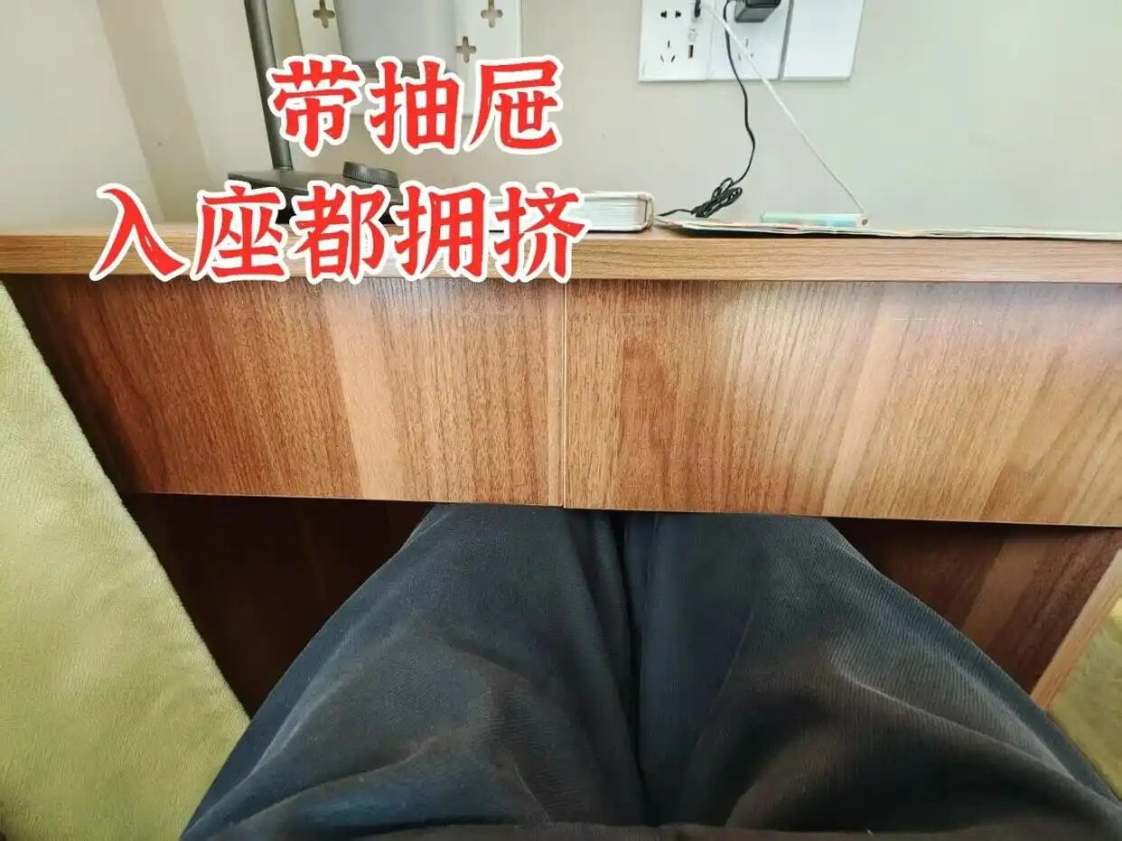 抽屉是看似“收纳强”,其实是一个极其“反人类”的设计,因为当你坐进这种带抽屉的书桌后,你会发现下半身完全被束缚住了,想要跷二郎腿、踩裁缝机(抖腿)、伸展下腿脚,分分钟就是膝盖撞抽屉了!