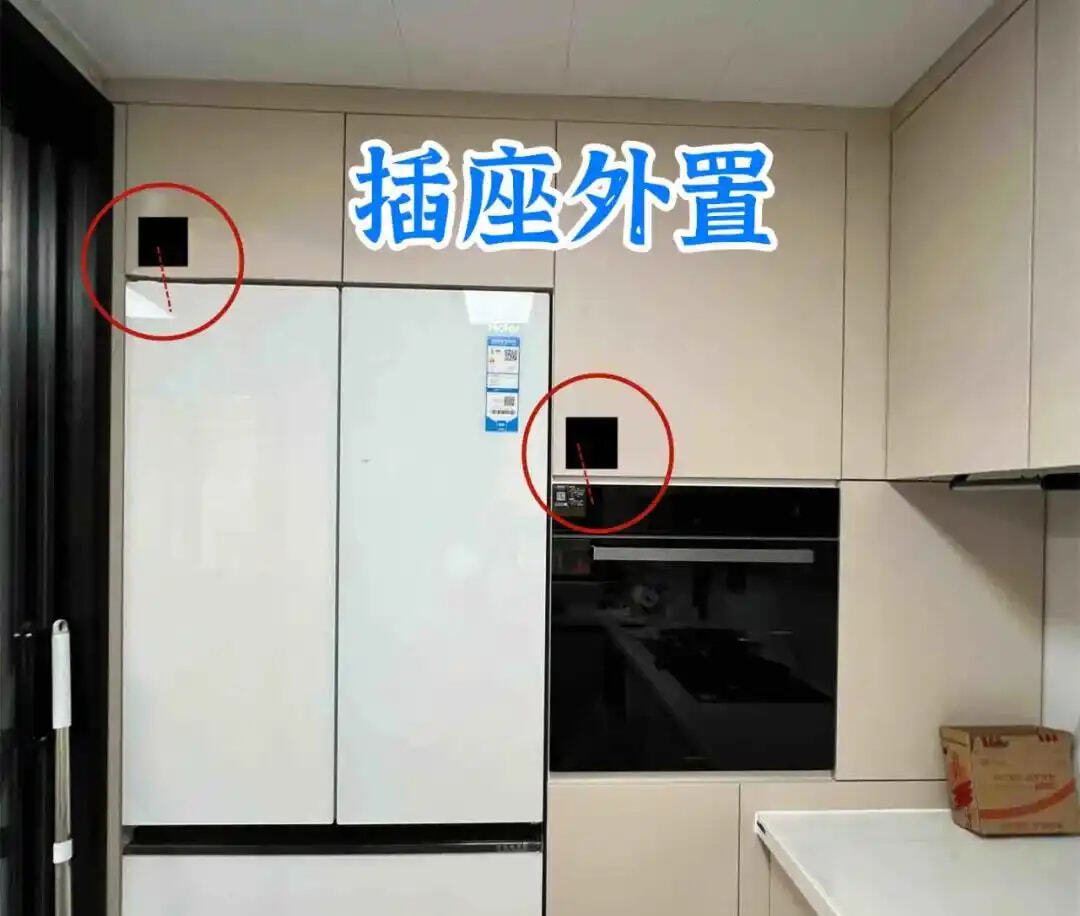 所以嵌入式电器安装,也不能忽略插座的细节设计,最好的方案是在侧边打孔,把插座放到电器安装以外的位置,方便插拔电源;