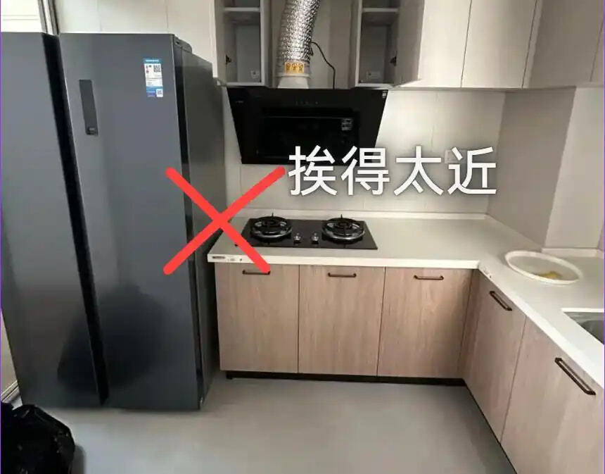 在网上搜“嵌入式家电翻车”,会有很多人晒出自家翻车的案例,各种翻车情况都有:有人说自家嵌入式冰箱尺寸没量准,冰箱凸出来一大截,破坏了整体的美观的。
