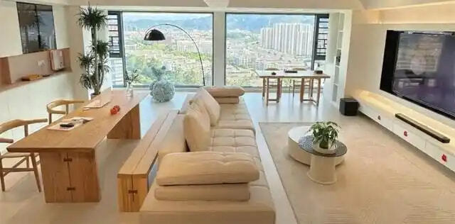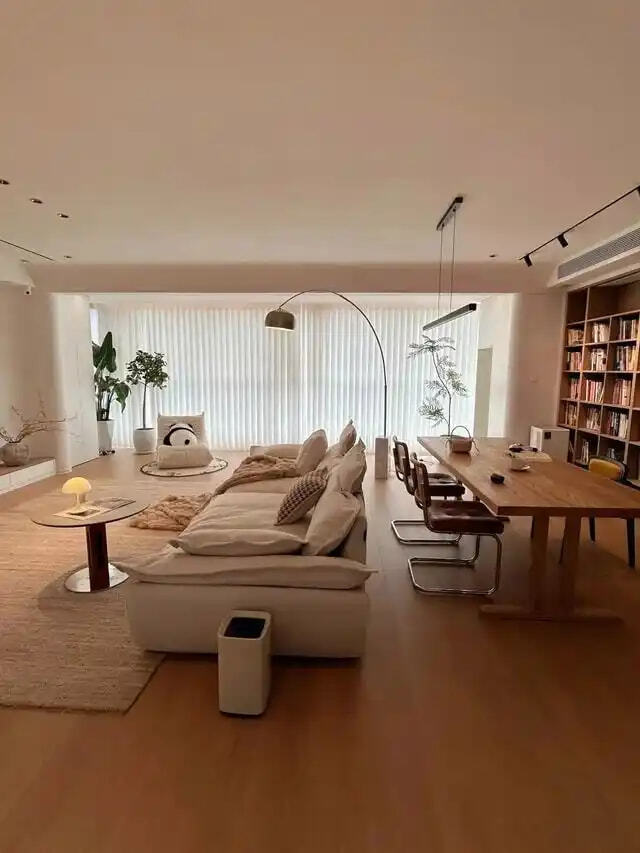 通过牺牲一个“没有的房间”,打造开放式大横厅,把书房从角落里解放出来,让整个客厅变得更加通透和开阔,开放空间也让家人之间交流更自然,一举多得。