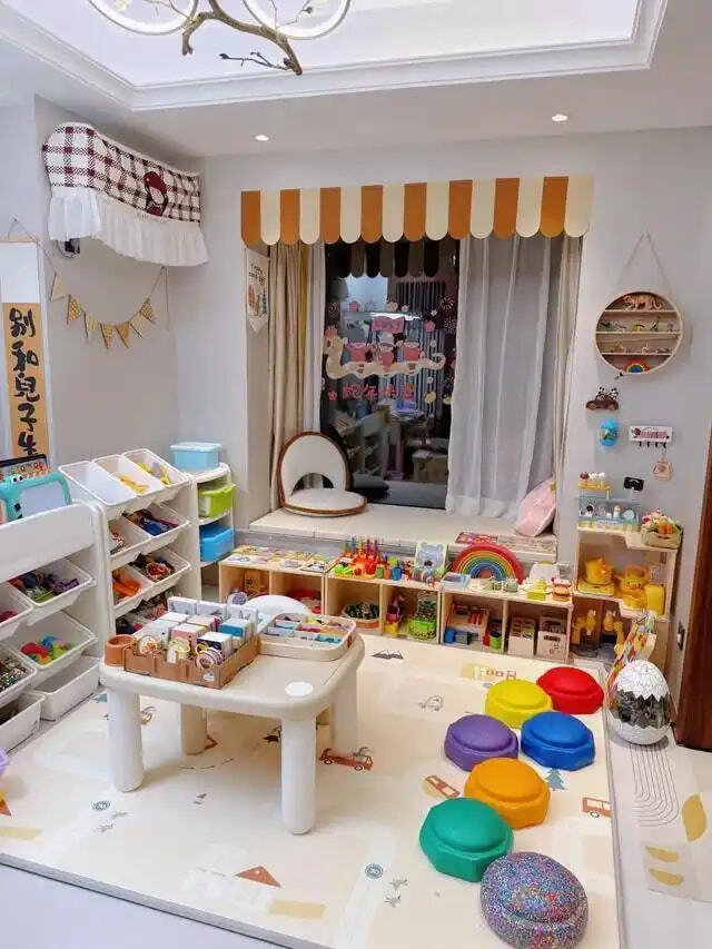 书房改成儿童活动区,摆上绘本和玩具,让宝宝有个属于自己的玩乐空间。