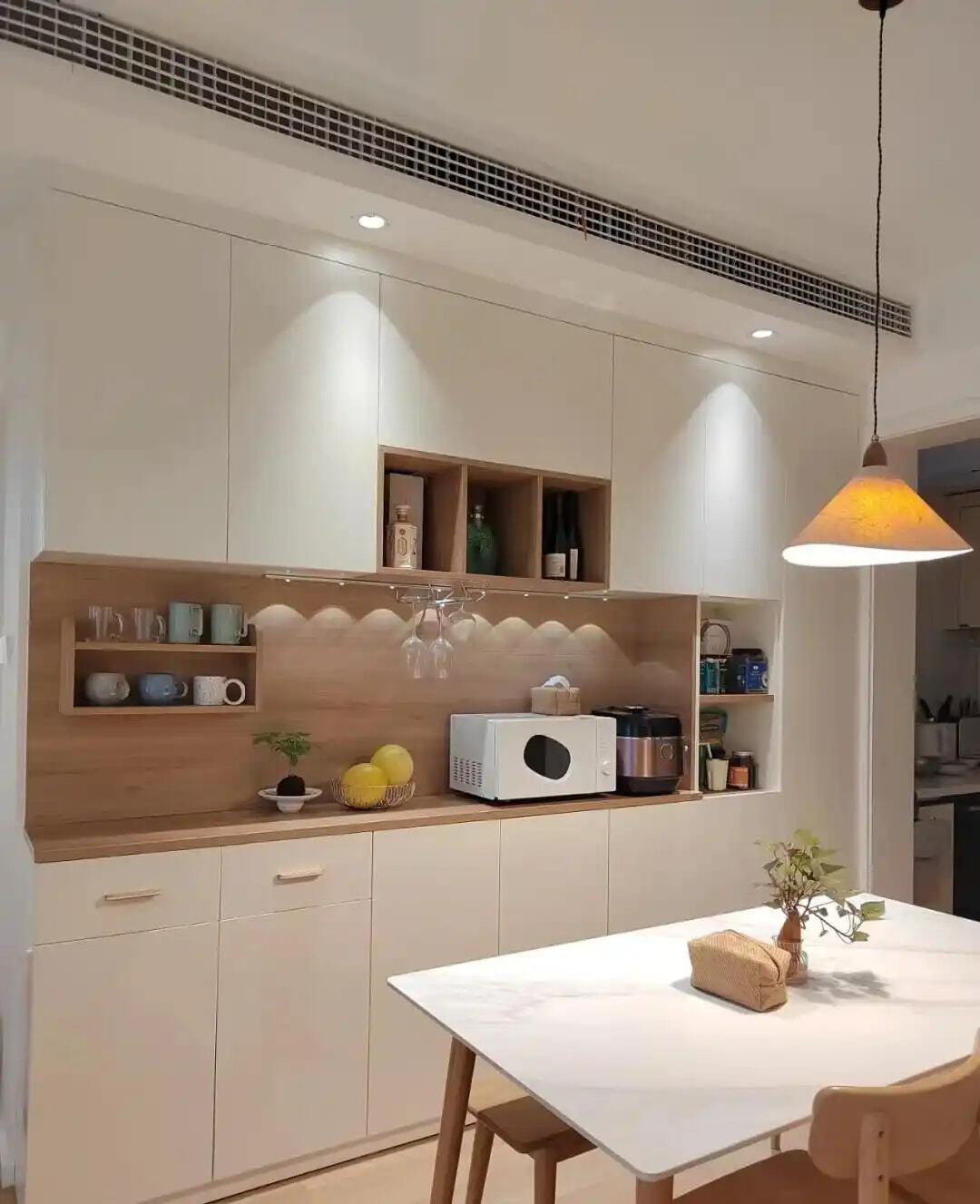 12.酒柜不是必需的,但餐边柜可以安排上,作为厨房收纳的补充,优化餐厨动线。