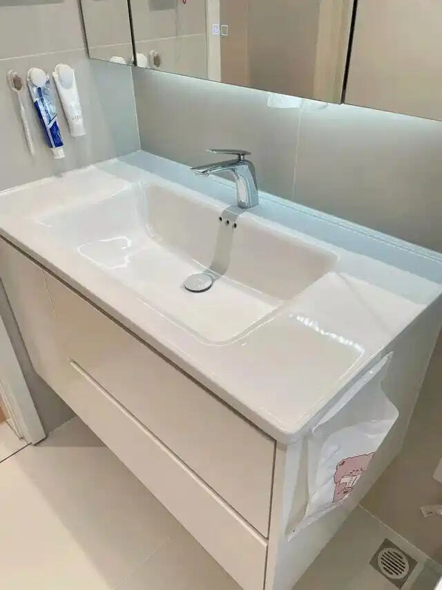 ③陶瓷一体盆:台上盆边缘易积水发霉难清理,台下盆接缝处易发黄发霉,选择陶瓷一体盆,台面与台盆无缝连接,杜绝卫生死角,干净又轻松。