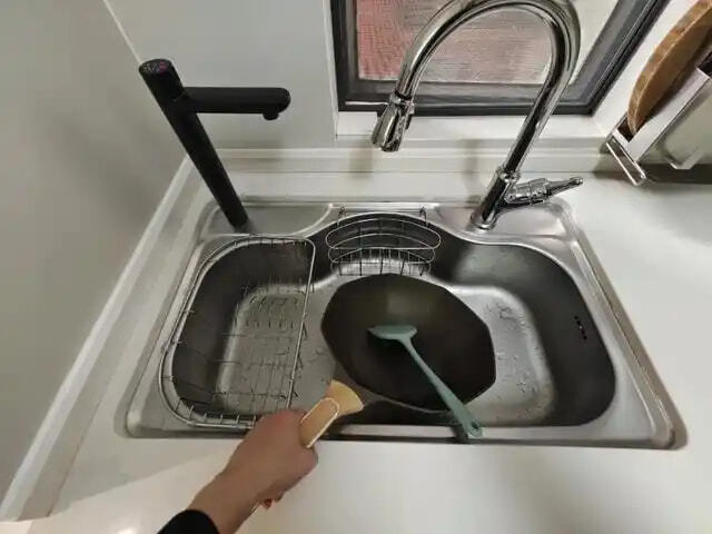 ③抽拉龙头:固定龙头冲洗水槽角落或锅具极其不便,水花四溅!换成可抽拉、可切换花洒模式的龙头,可以360°无死角清洁水槽,冲洗蔬果、接水浇花都极其方便。