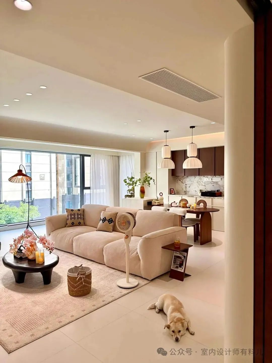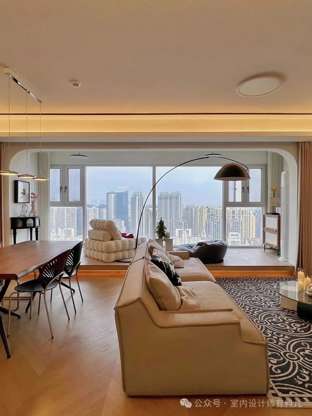 有超宽落地窗,打通阳台秒变"豪宅感",客厅特别显大,空间感绝了,朋友来都误以为房子有两百平。