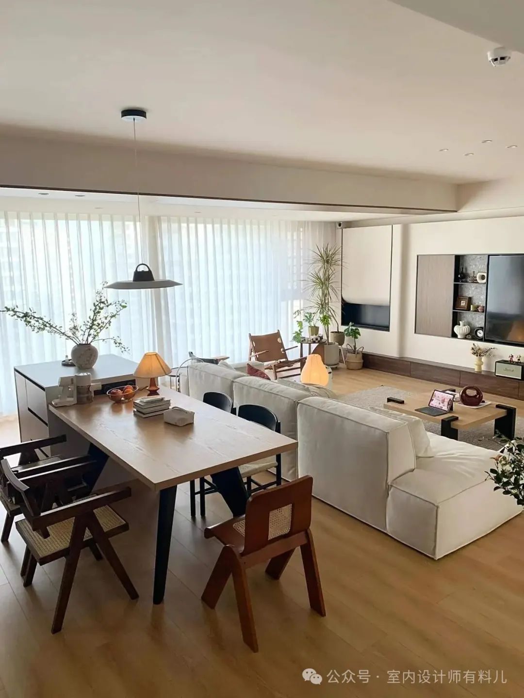 就像 网友@丸子丸子 说的:我就是喜欢一眼能把客厅看完的大空间,做了开放式厨房,客餐厨一体的大横厅占了60平,整个家就是两个字,通透,家人一起吃饭、一起发呆、一起度过那些微不足道却闪闪发光的日常。