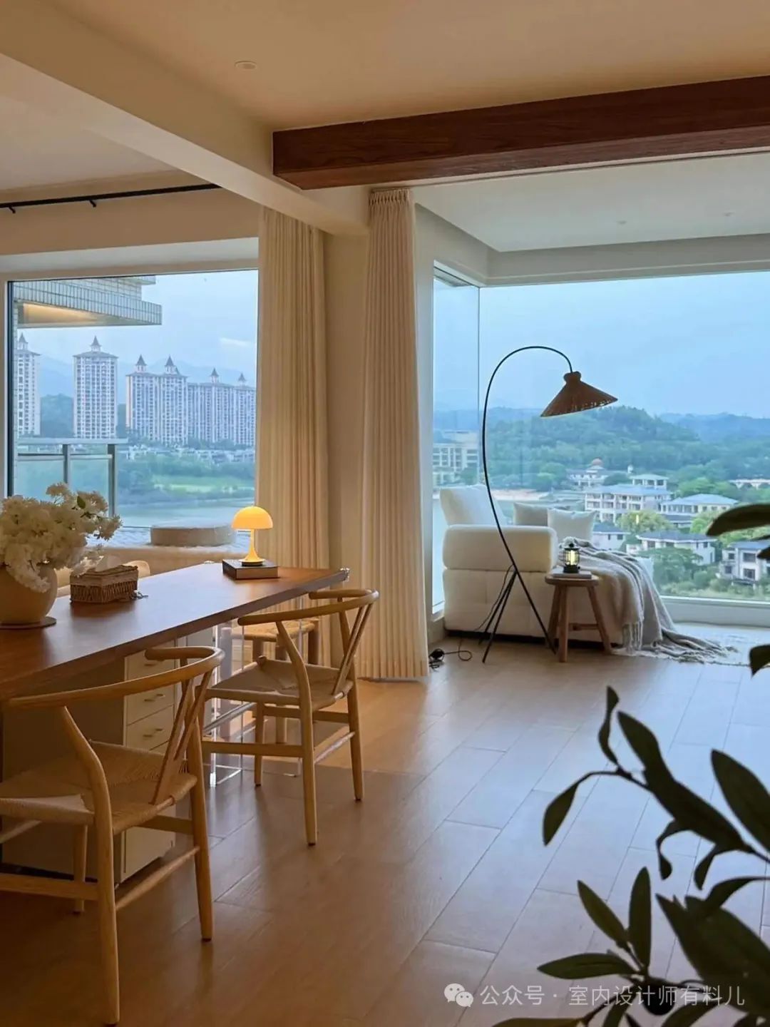 网友 @听老婆话要发达说: 当初选横厅时,总听没住过横厅的人说它各种不好。但住进去后发现,这面超大的落地玻璃,带来的优越视野与采光,是其他户型比不了的。