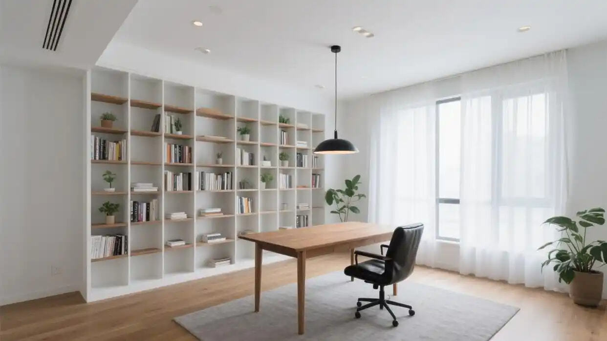 有人将客厅变成“书房式客厅”——取消传统沙发茶几,取而代之的是一张大书桌和满墙书架,孩子写作业、大人阅读或加班,彼此陪伴又互不干扰。