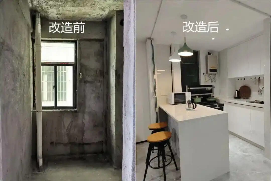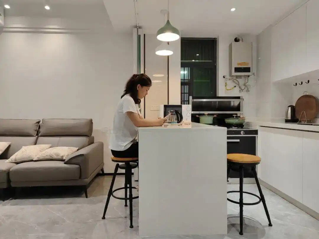 封闭式小厨房特别容易闷热,尤其是夏天,开火做饭像在 “桑拿房” 里,待2分钟就满头汗。改成开放式后,厨房的热气能扩散,客厅的空调冷气也可以覆盖厨房,下厨体验舒适度飙升。