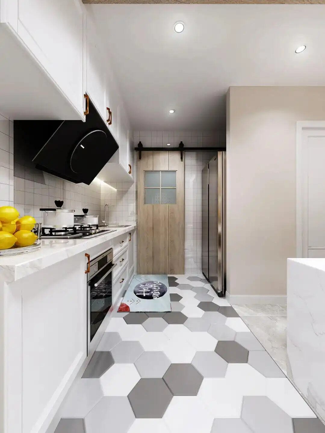 ⭕案例3:过道式开放式厨房。