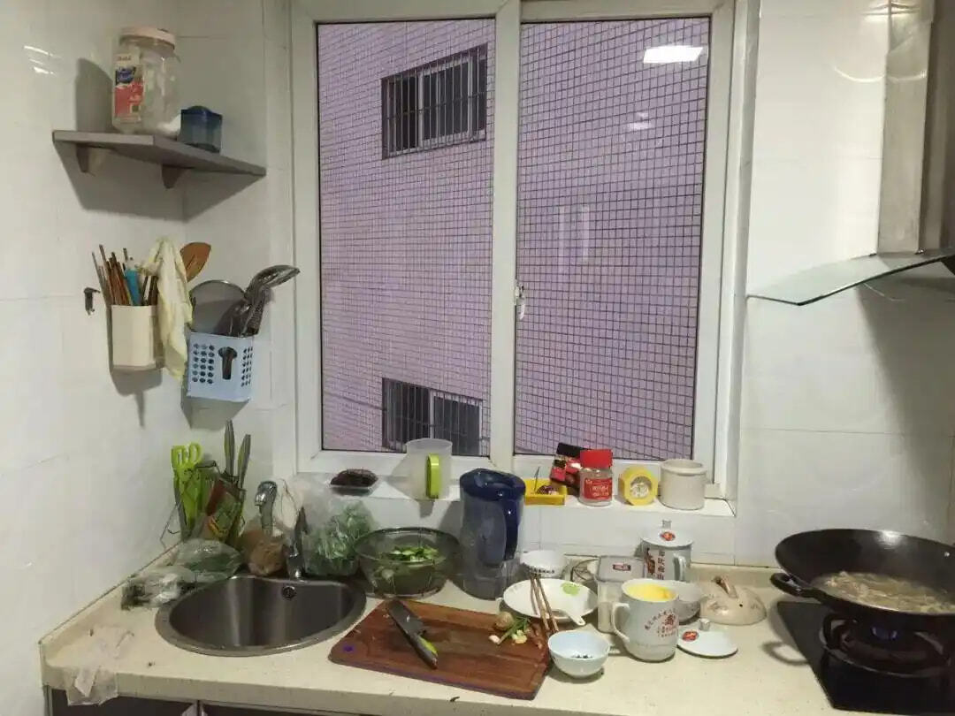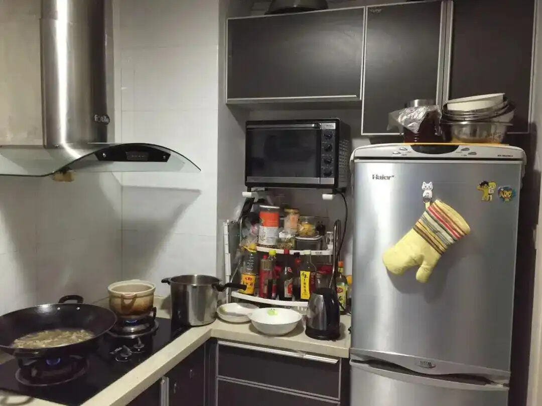 ③台面空间有限:这是小户型厨房的通病,有限的台面被小家电、调料瓶占满,切菜备餐都需“见缝插针”,还何谈整洁?