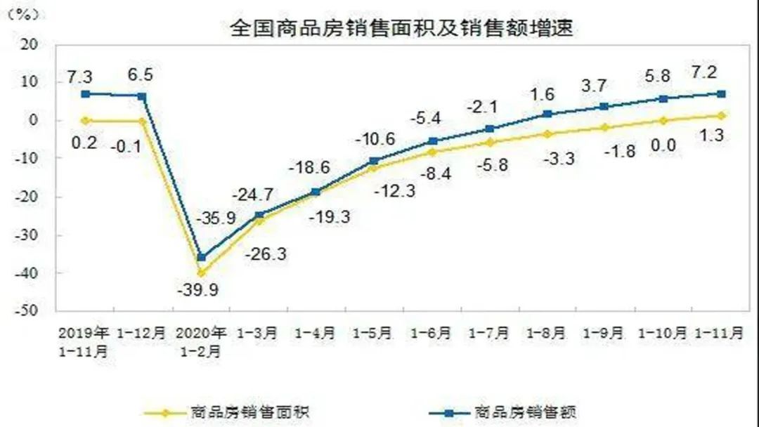 1-11月份,全国房地产开发投资129492亿元,同比增长6.8%,增速比1-10月份提高0.5个百分点;商品房销售面积150834万平方米,同比增长1.3%,增速比1-10月份提高1.3个百分点;