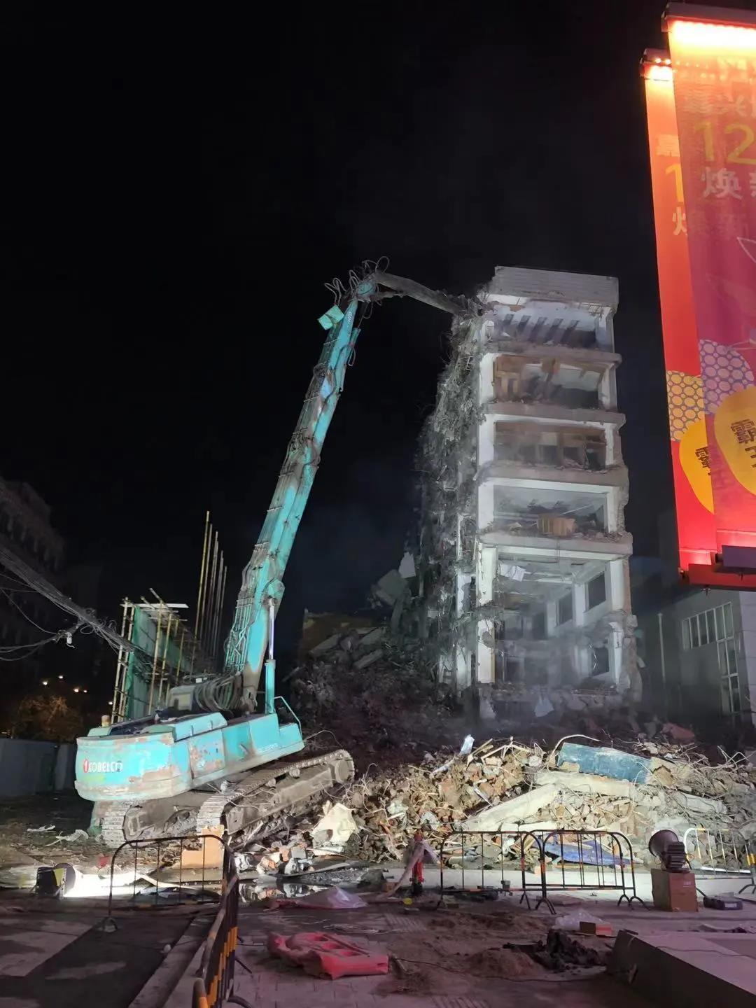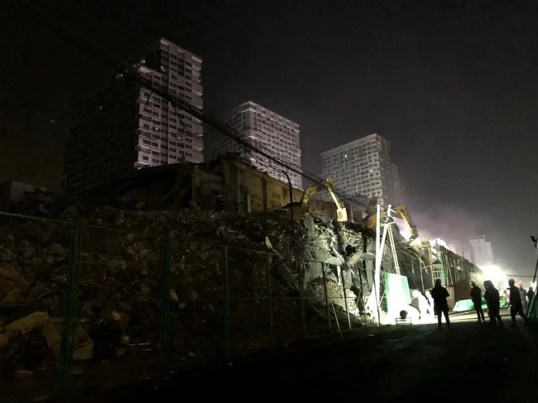 为了如期完成目标,12月24日晚上,在多台照明灯的照射下,征收中心破例进行了夜间作业,终于在25日凌晨4点安全圆满地完成了主体房屋的拆除,实现了既定目标,确保了中山路南半幅的顺利通车以及旭辉广场的开业。