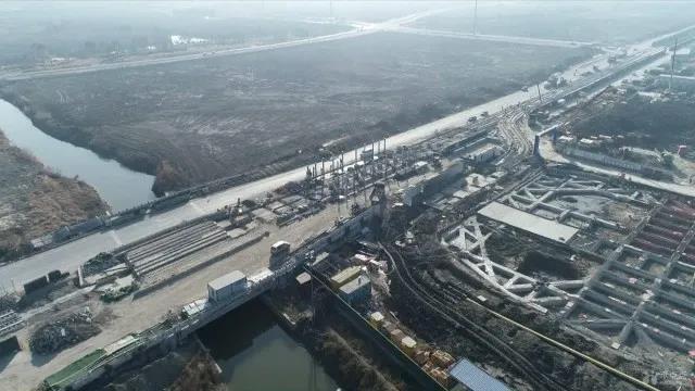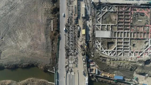 在庆丰路槜李路有轨电车一期工程基地站的施工现场,土方开挖、钢立柱固定、检修井砌筑工作同步进行。据了解,首座样板站位于庆丰路停车场旁,采用对称侧式。