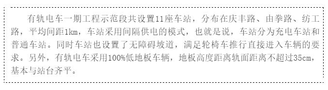 据了解,我市有轨电车采用目前国内技术、性能最为可靠的“超级电容”供电装置技术。车辆到达站点时,在乘客上下车间隙,有轨电车就自动完成充电。同时该工程运用综合交通智能控制系统,确保行车定点准时、快速通过。