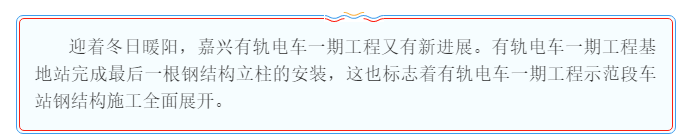 嘉兴市有轨电车一期工程技术员苏仁告诉记者,预计在两三天以内,我们站台,周围的承载板和站台基础的浇筑完成,这个示范段首站预计在2月初可以具备有轨电车的基本使用功能。