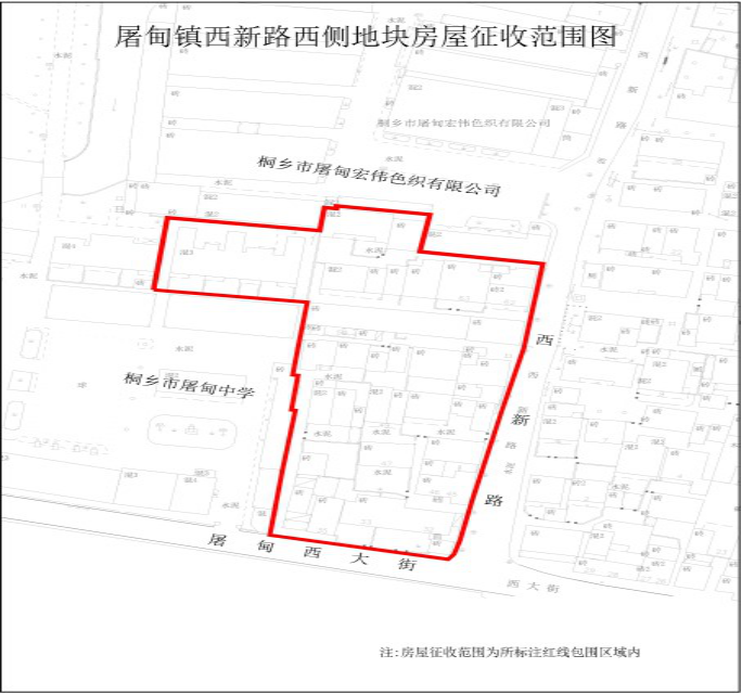 根据《国有土地上房屋征收与补偿条例》和《浙江省国有土地上房屋征收与补偿条例》的规定,现将屠甸镇西新路西侧地块房屋征收范围公告如下: