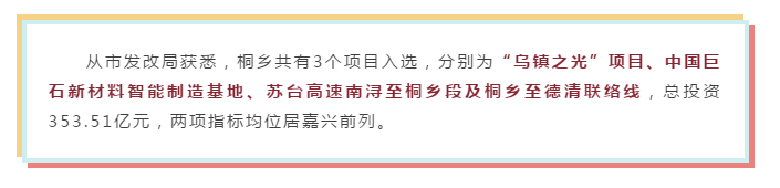 值得关注的是,此次《浙江省重大建设项目“十四五”规划》规划中,沪乍杭铁路、铁路杭州萧山机场站枢纽及接线工程等与桐乡息息相关的交通设施项目也位列其中。可以期待,“轨道上的新桐乡”将一步步成为可见的现实。