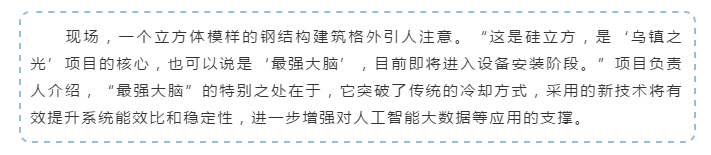这个正在建设中的项目,积极面向国家重大战略需求和区域经济社会发展需要,也是桐乡数字经济蓬勃发展的典型。它不仅代表了大数据、人工智能等新一代信息技术的融合应用,还可以成为粘合上下游产业资源、项目的助推器,带动更多科研成果在区域内转化,为推动经济高质量发展提供有力的科技支撑。据悉,目前项目土建部分完成度已近七成,多幢建筑主体均已通过主体验收,预计今年9月中旬可完工并投入运营。